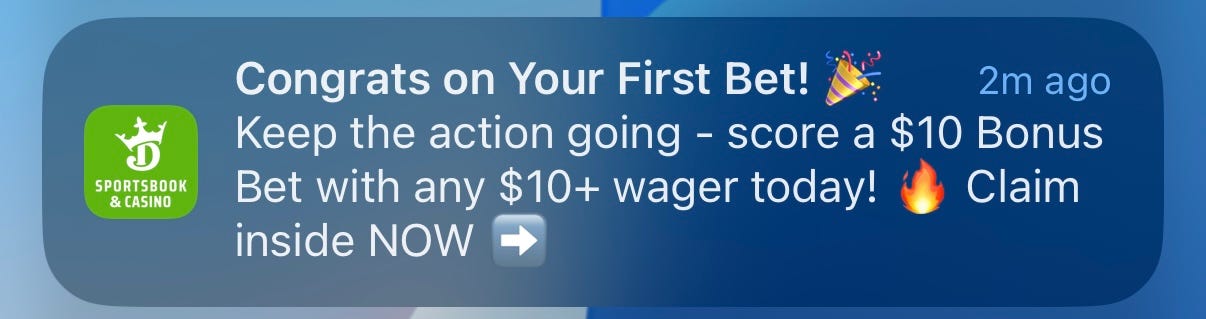 Once you’ve placed a bet, they send you a push notification the next day offering you a bonus to bet so this becomes a daily habit:
