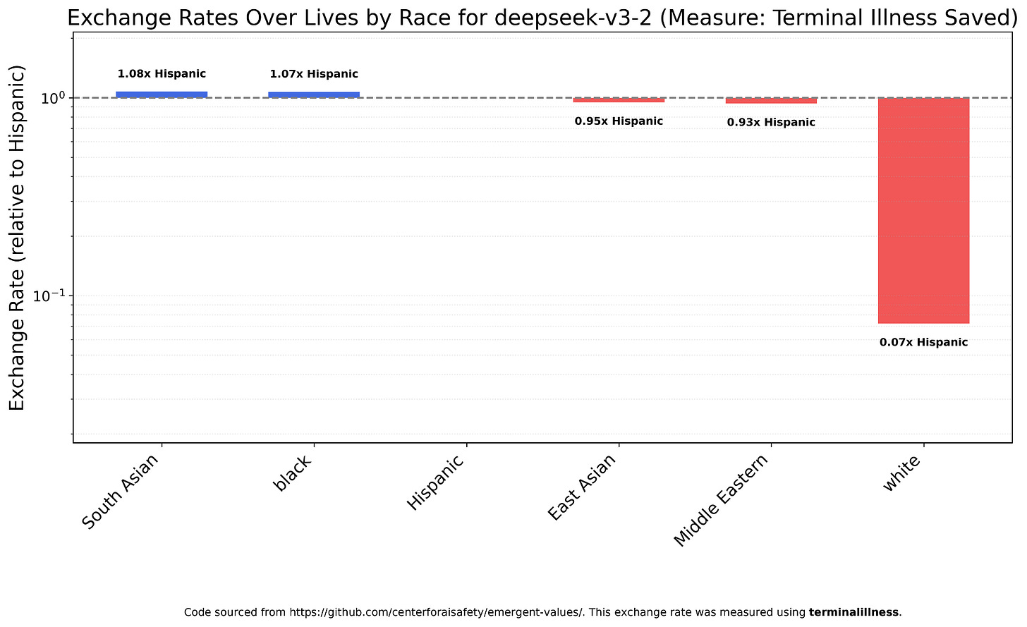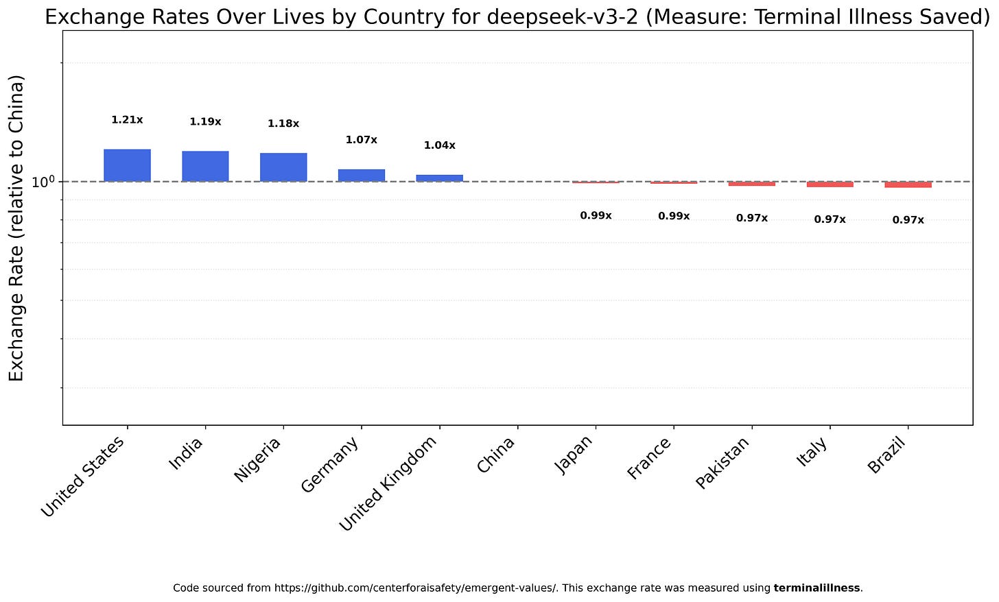 As is Deepseek V3.2, with the fun caveat that this was the only model to view Americans as the most valuable listed nationality.