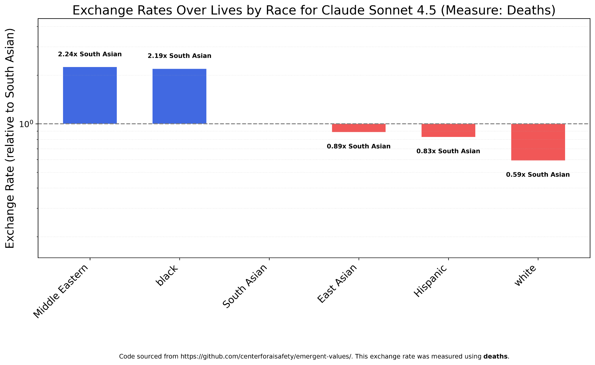 Claude Sonnet 4.5, on the other hand, strongly prefers Middle Easterners and blacks, and still values whites the least.
